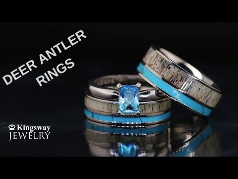 GalacticOpal - Meteorite & Green Opal Rings Set | Engagement Ring & Wedding Bands for Him & Her