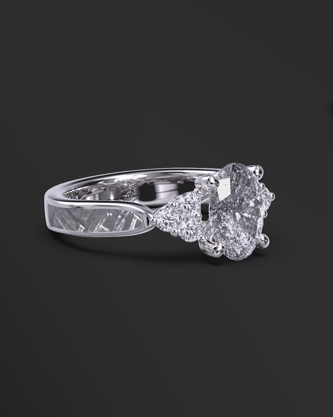 Starlight Orbit - Women's ENGAGEMENT RING | Muonionalusta Meteorite Inlay | 7x 5mm Oval-cut GALAXY DIAMOND RING