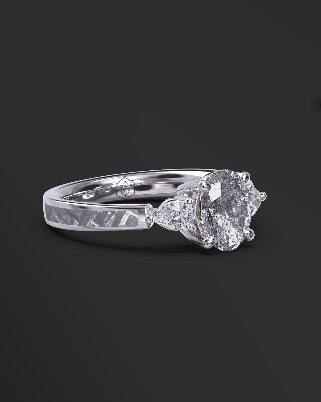 Meteorite Heartbeat - Ring Set for Women | Muonionalusta Meteorite Engagement Ring | 2 ct Certified Moissanite
