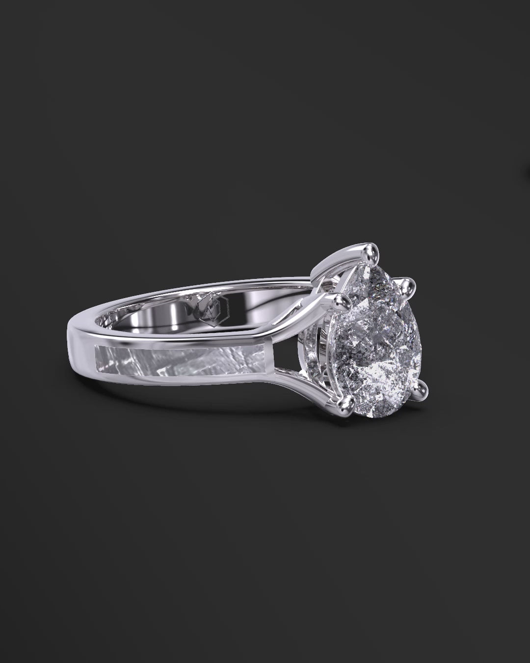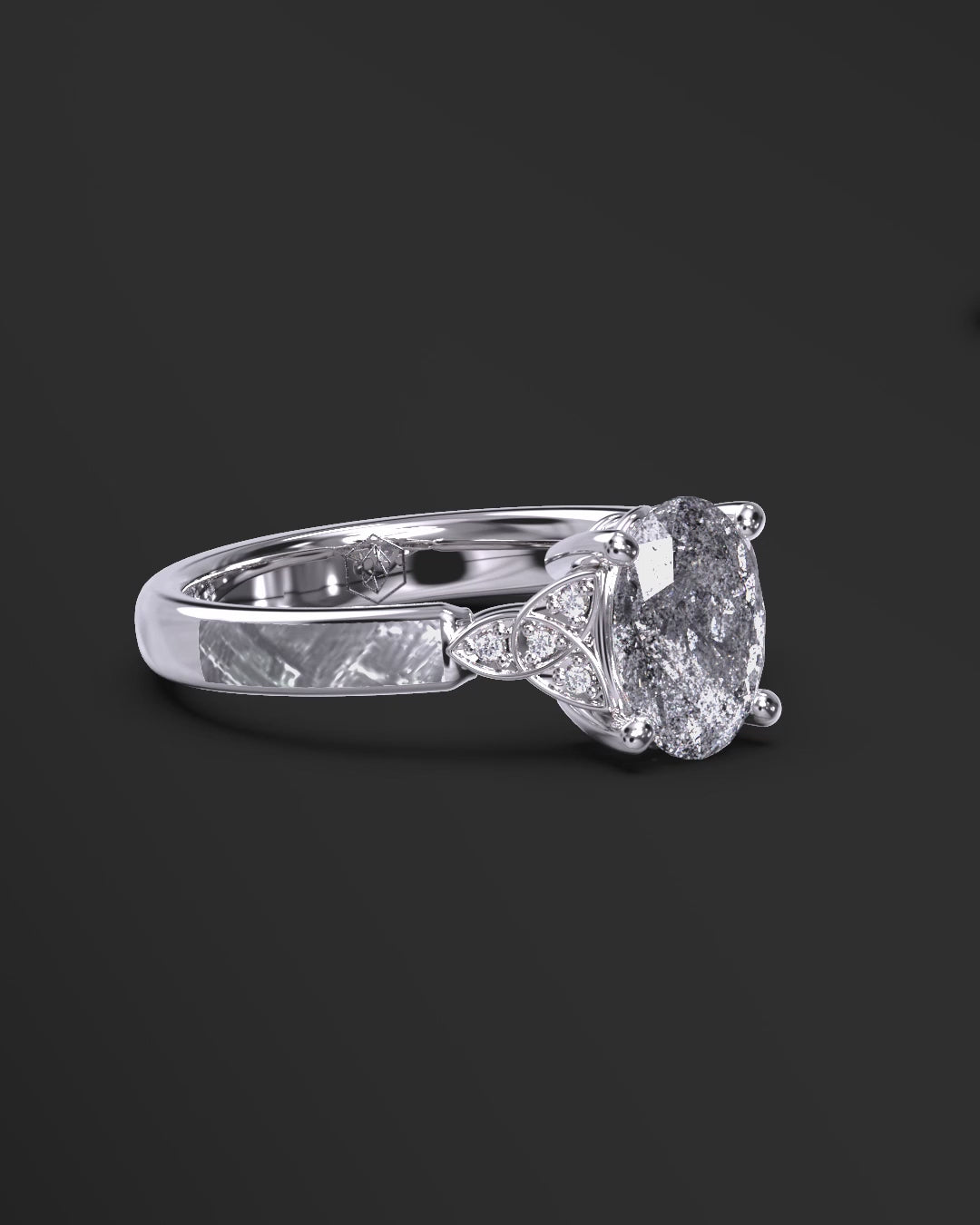Andromeda - Engagement Ring for Women | Muonionalusta Meteorite | Oval-cut Galaxy Diamond Ring