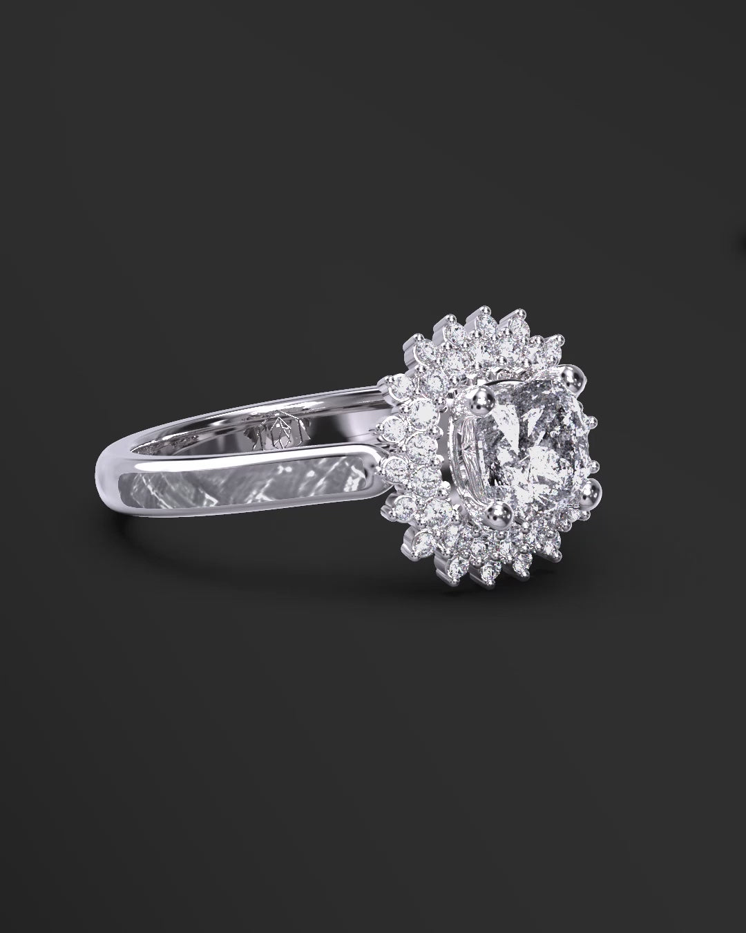 Solstice Shine - Women's ENGAGEMENT RING | Muonionalusta Meteorite Inlay | Cushion Square-Cut GALAXY DIAMOND RING