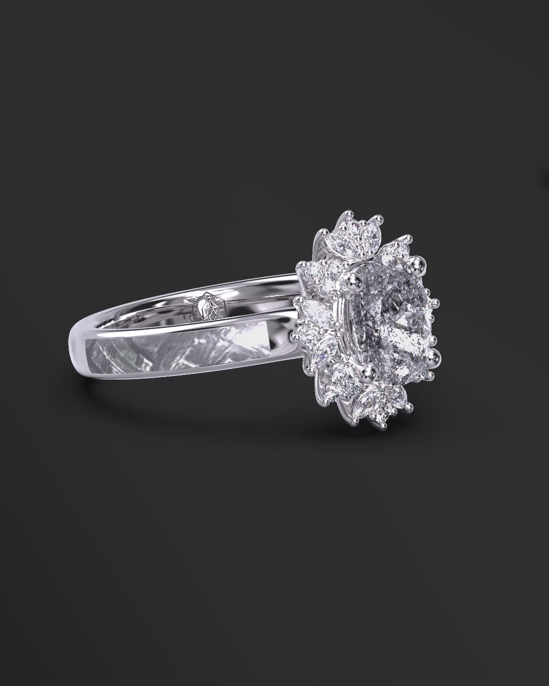 Supernova - Engagement Ring for Women | Muonionalusta Meteorite Inaly | Galaxy Diamond Ring