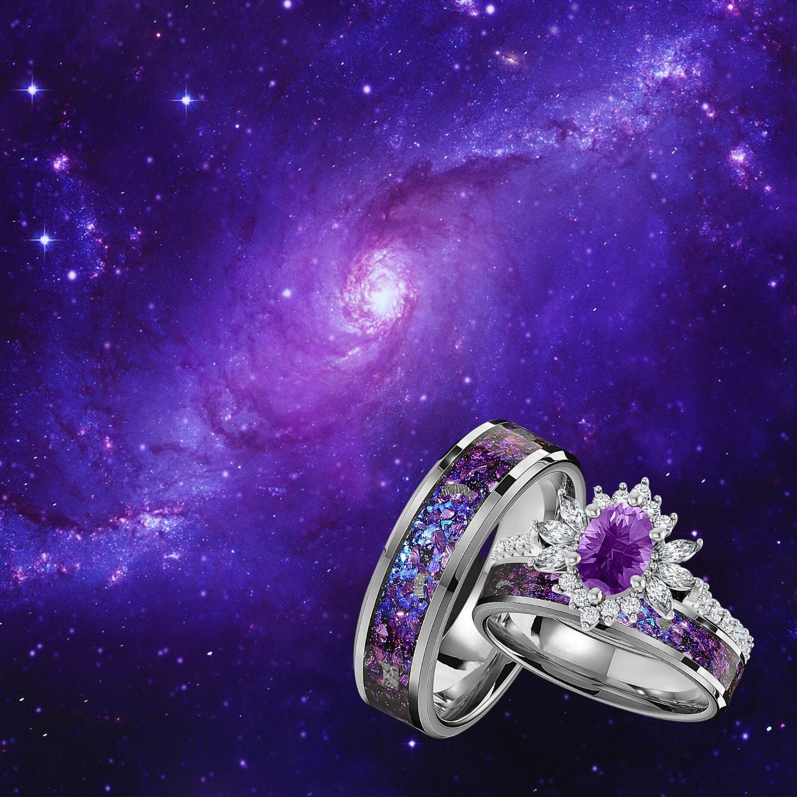 The Black Hole set - 3PCS His & Her Wedding Engagement Ring Set | Lab Grown Diamond | Muonionalusta Meteor Wedding Band