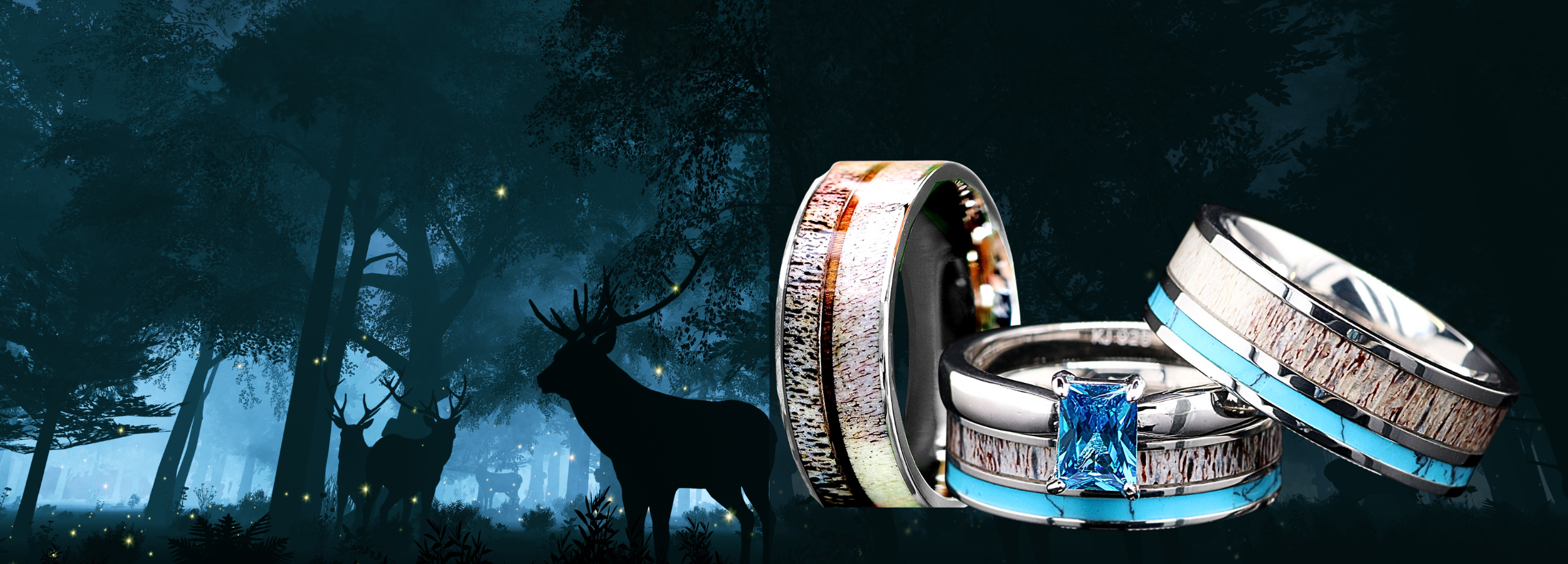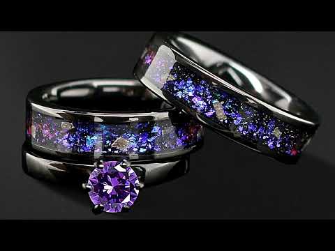 DarkStar - Meteorite Engagement Wedding Rings 3pc | Tungsten & Meteorite His and Hers Wedding Rings Sets