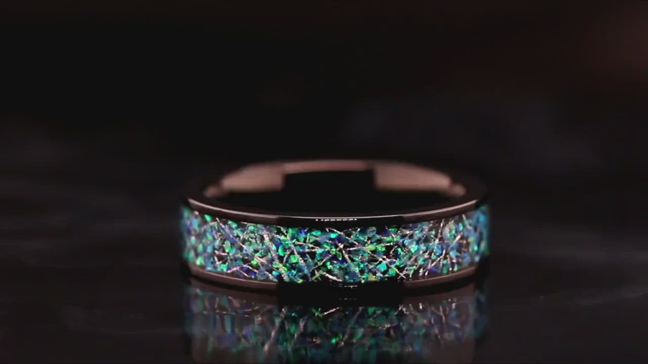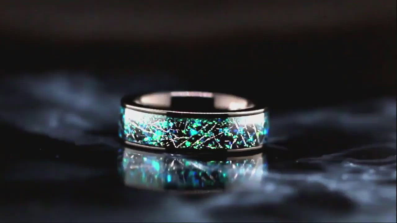 Meteorite natural Green & Blue opal chips Wedding Band for Men and Women