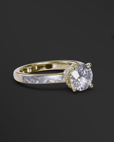 The Astral Bloom Engagement Ring is a stunning celebration of cosmic beauty and refined craftsmanship. Expertly crafted in your choice of 14K Gold or Sterling Silver, this women’s engagement ring features a genuine Muonionalusta meteorite inlay, showcasing naturally formed patterns that make every ring truly one of a kind.