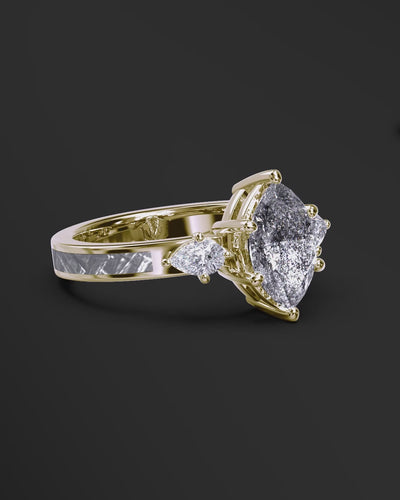 Galactic Halo - Women's ENGAGEMENT RING | Muonionalusta Meteorite Inlay | 8x4mm Marquise-cut Galaxy Diamond Ring