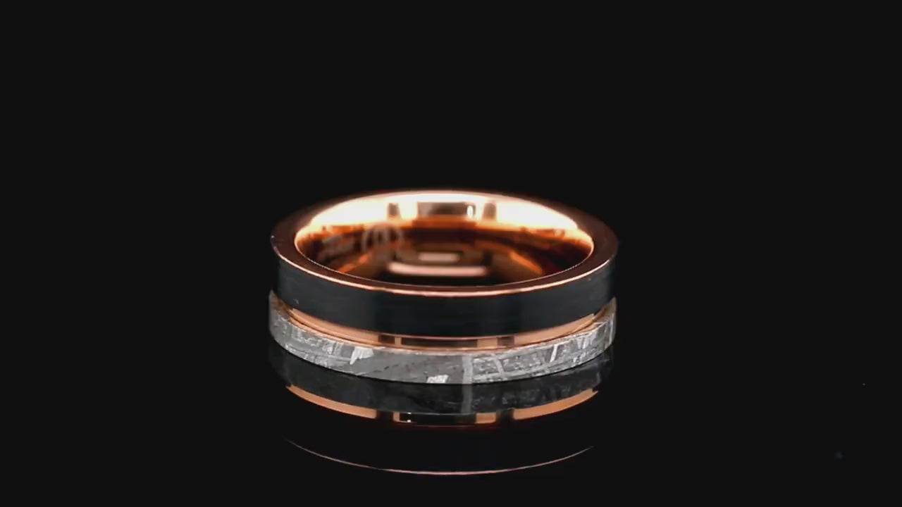 Designed for couples, our wedding bands for him and her are crafted from robust tungsten and showcase a genuine Muonionalusta Meteorite inlay.