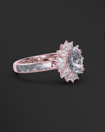 Starlight Orbit - Women's ENGAGEMENT RING | Muonionalusta Meteorite Inlay | 7x 5mm Oval-cut GALAXY DIAMOND RING