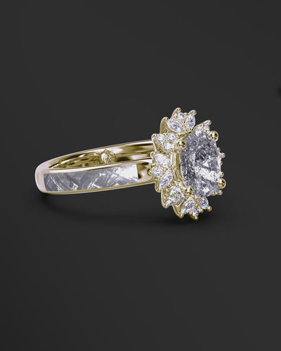 The Starlight Orbit Engagement Ring is a dazzling fusion of celestial artistry and fine craftsmanship. Expertly crafted in your choice of 14K gold or sterling silver, this women’s engagement ring features a rare Muonionalusta meteorite inlay, showcasing naturally occurring patterns formed over millions of years.